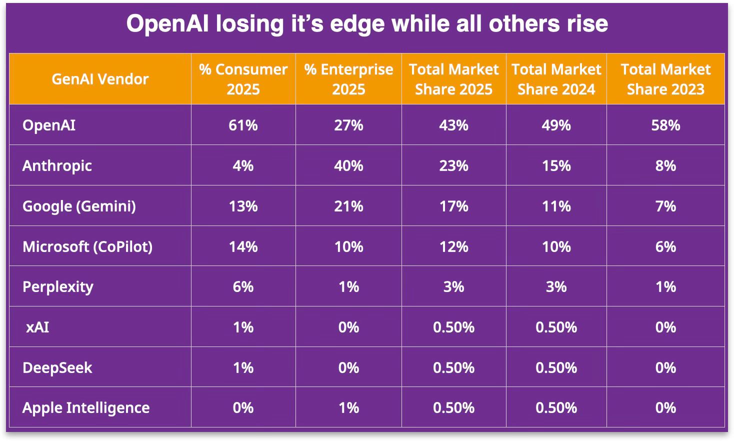 The GenAI shuffle erodes OpenAI’s market share (and market cap)