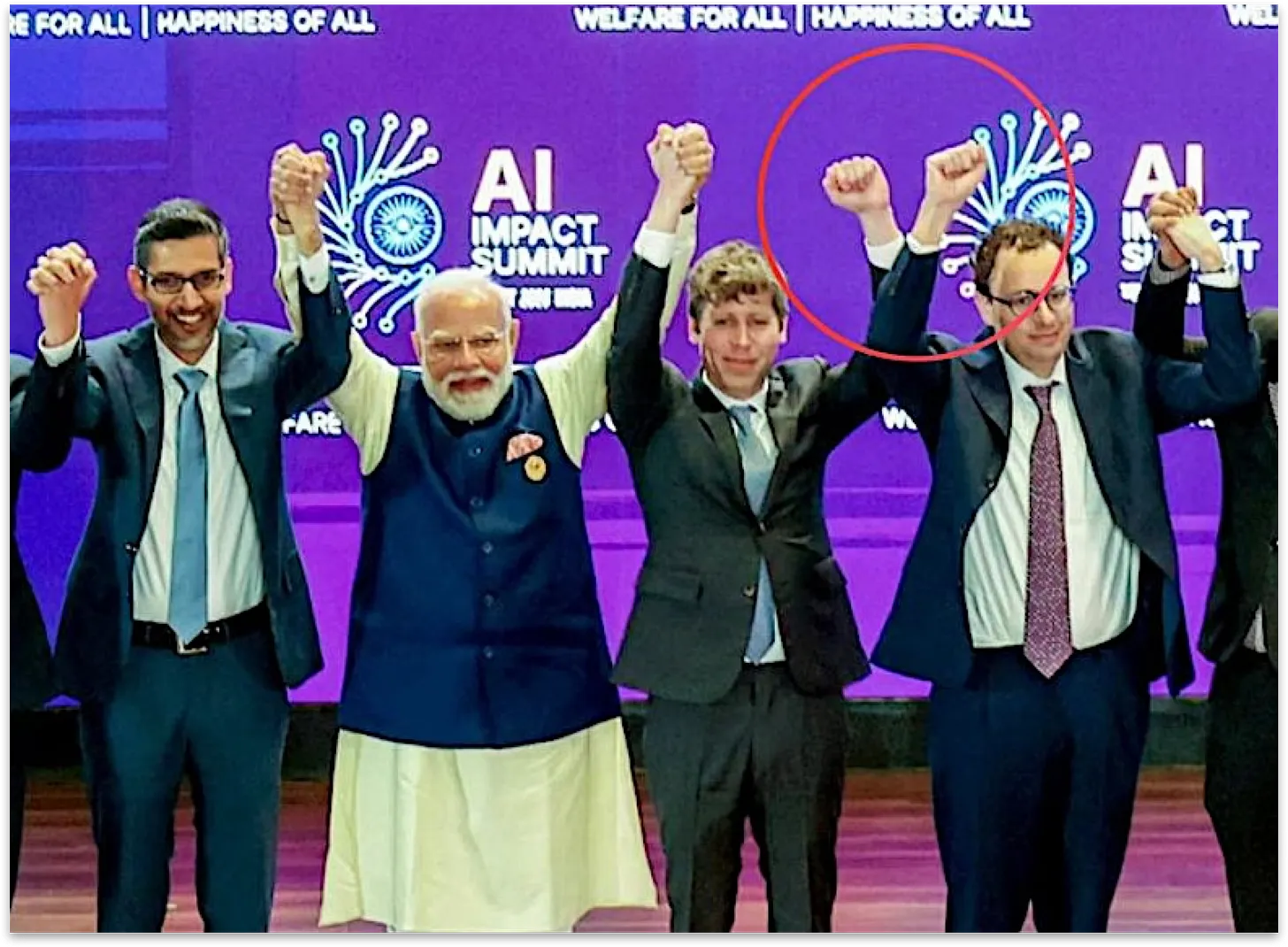 OpenAI’s Sam Altman and Anthropic CEO Dario Amodei weren’t feeling it for each other with jubilant Prime Minister Narendra Modi at the India AI Summit in New Delhi.
