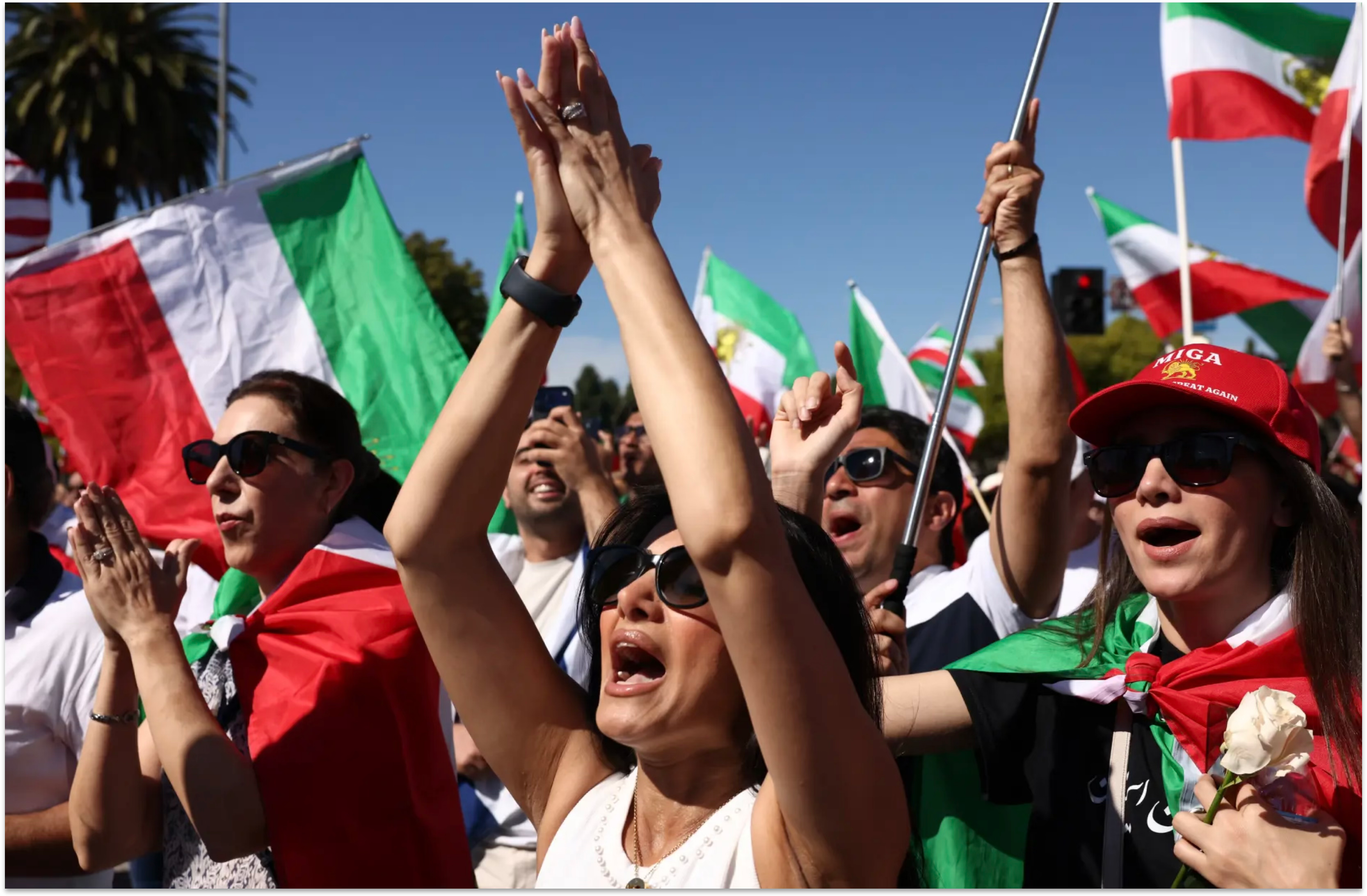 Thousands of Iranian-Americans lined Wilshire Boulevard in LA to celebrate the death of Khamenei. 🇮🇷